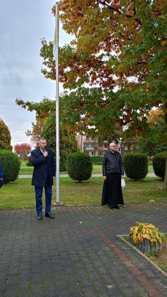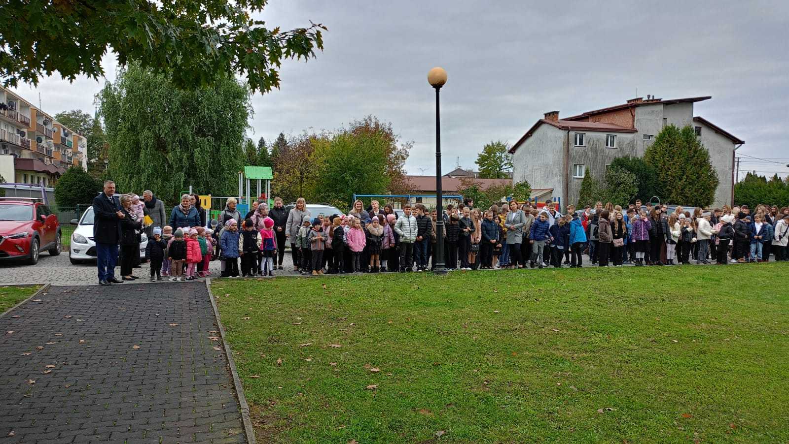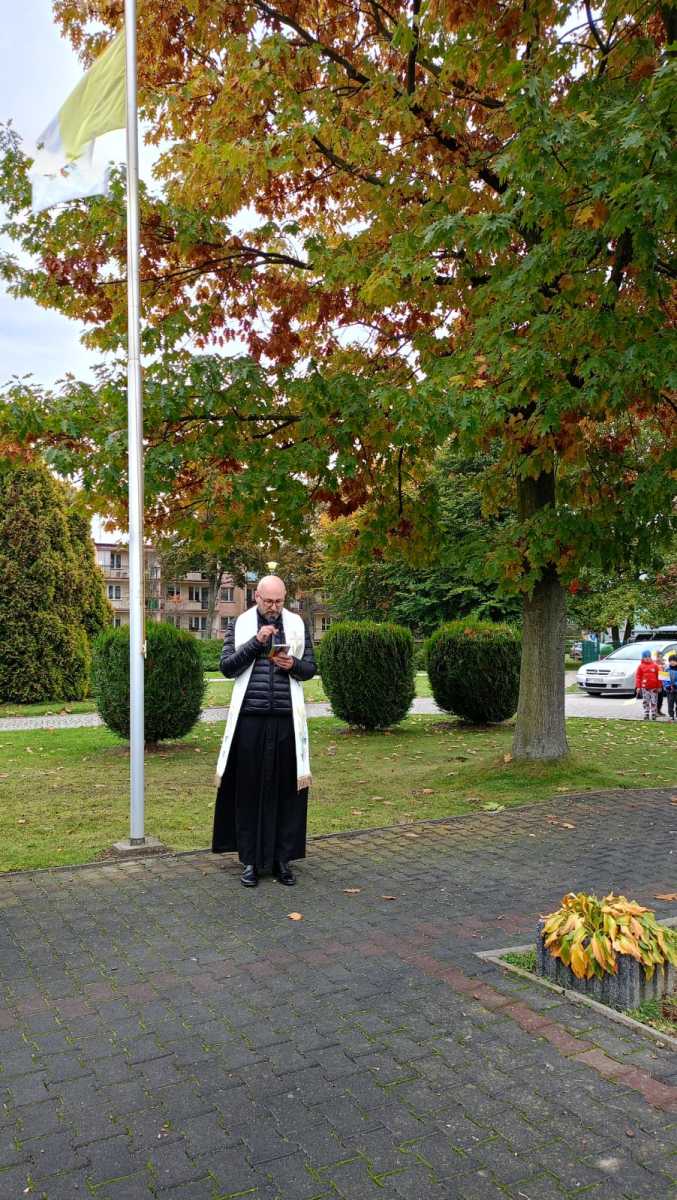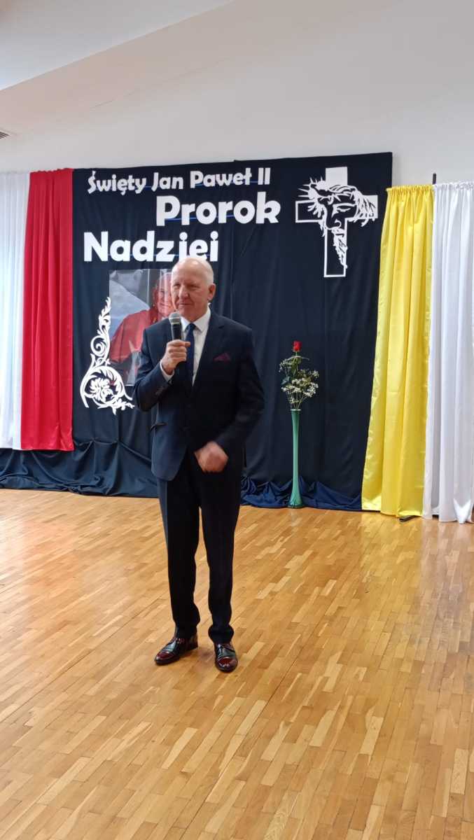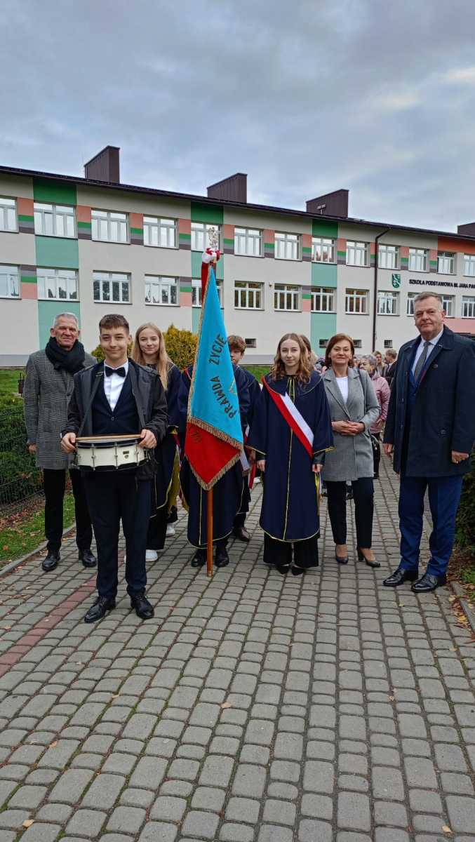 Przy figurze św. Jana Pawła II odbył się ceremoniał szkolny, został odśpiewany hymn państwowy, odmówiona modlitwa oraz złożone kwiaty.