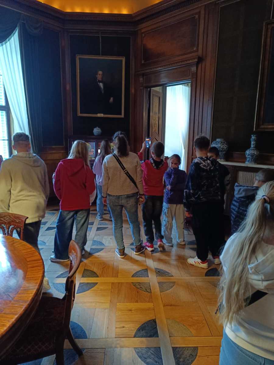Uczniowie klasy Vb, VIa i VIb 17.X 2025 byli na wyjeździe naukowym do Markowej i Łańcuta. Wyjazd organizowany był w ramach projektu “Geometryczne ścieżki Podkarpacia – Matematyka w architekturze naszej Małej Ojczyzny.” Projekt dofinansowała fundacja mBanku we współpracy z Fundacją Dobra Sieć. Uczniowie mogli zobaczyć z jakich brył składa się chata w skansenie a z jakich piękny zamek w Łańcucie. Zauważyć symetrię w budownictwie i przyrodzie, dostrzec matematykę we wnętrzach zamku i w chacie wiejskiej.