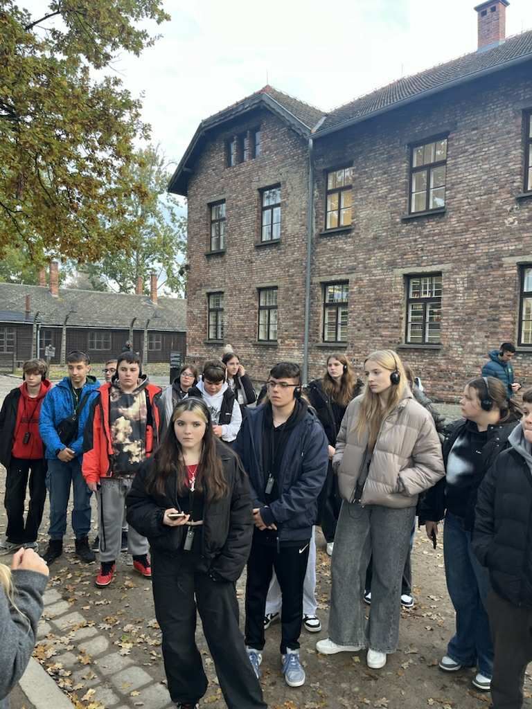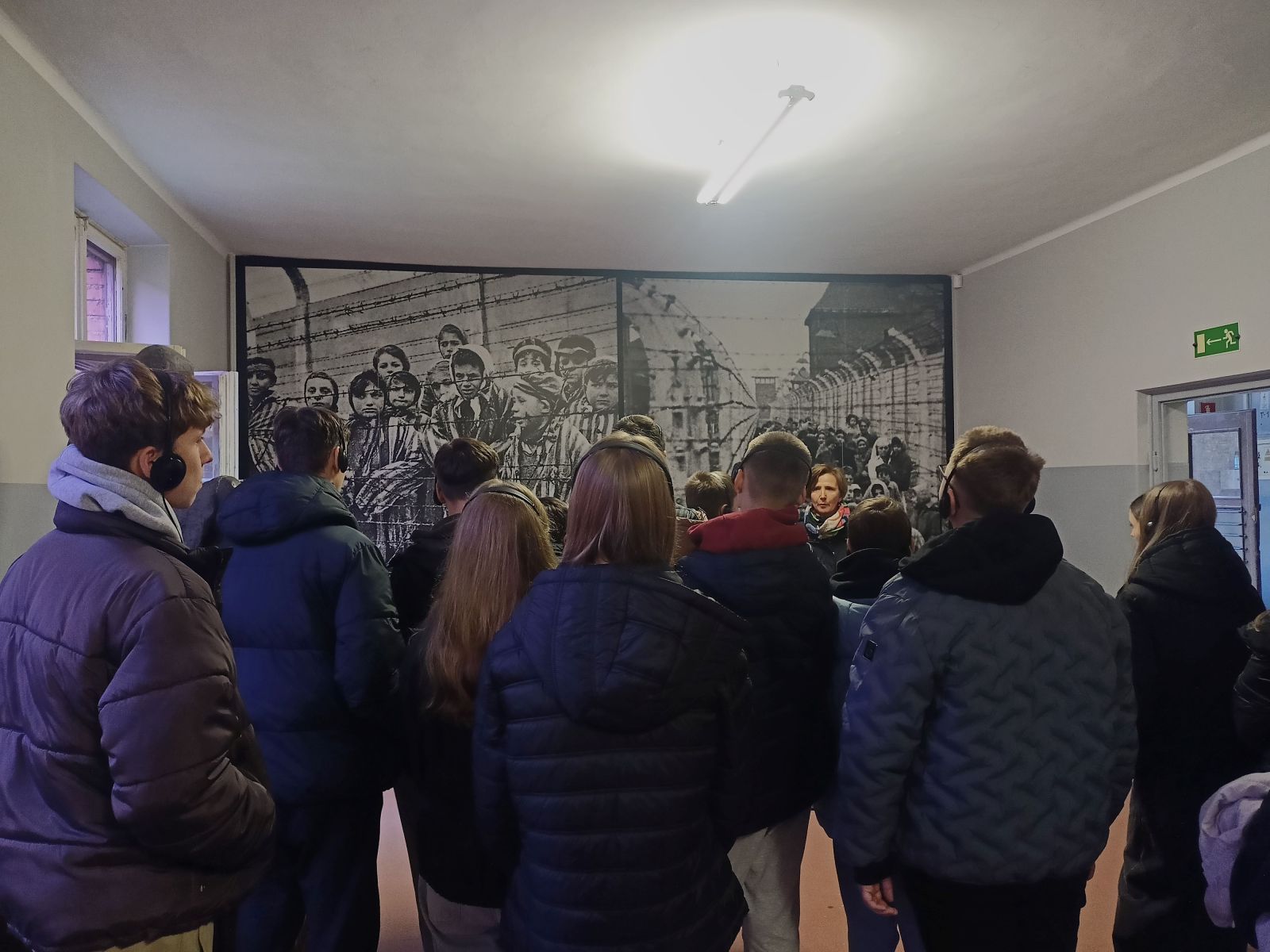 Pierwszym punktem programu było zwiedzanie Muzeum Auschwitz-Birkenau w Oświęcimiu – byłego niemieckiego obozu koncentracyjnego z czasów II wojny światowej, gdzie uczniowie poznali losy więźniów, warunki życia i tragedię, która wydarzyła się w tym miejscu. Była to poruszająca i bardzo ważna lekcja historii, skłaniającą do zadumy nad wartością wolności oraz szacunkiem do drugiego człowieka.