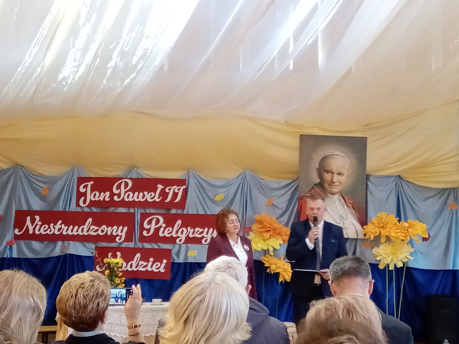 Po Eucharystii uczestnicy zjazdu w uroczystym korowodzie, przy akompaniamencie zespołu „Łęczanie”, przeszli do Szkoły Podstawowej w Łękach Dukielskich. Tam uczniowie zaprezentowali program artystyczny, w którym przybliżyli postać św. Jana Pawła II – swojego patrona, jako niestrudzonego pielgrzyma nadziei, przypominając jego duchowe dziedzictwo i przesłanie, które wciąż pozostaje żywe w ludzkich sercach.