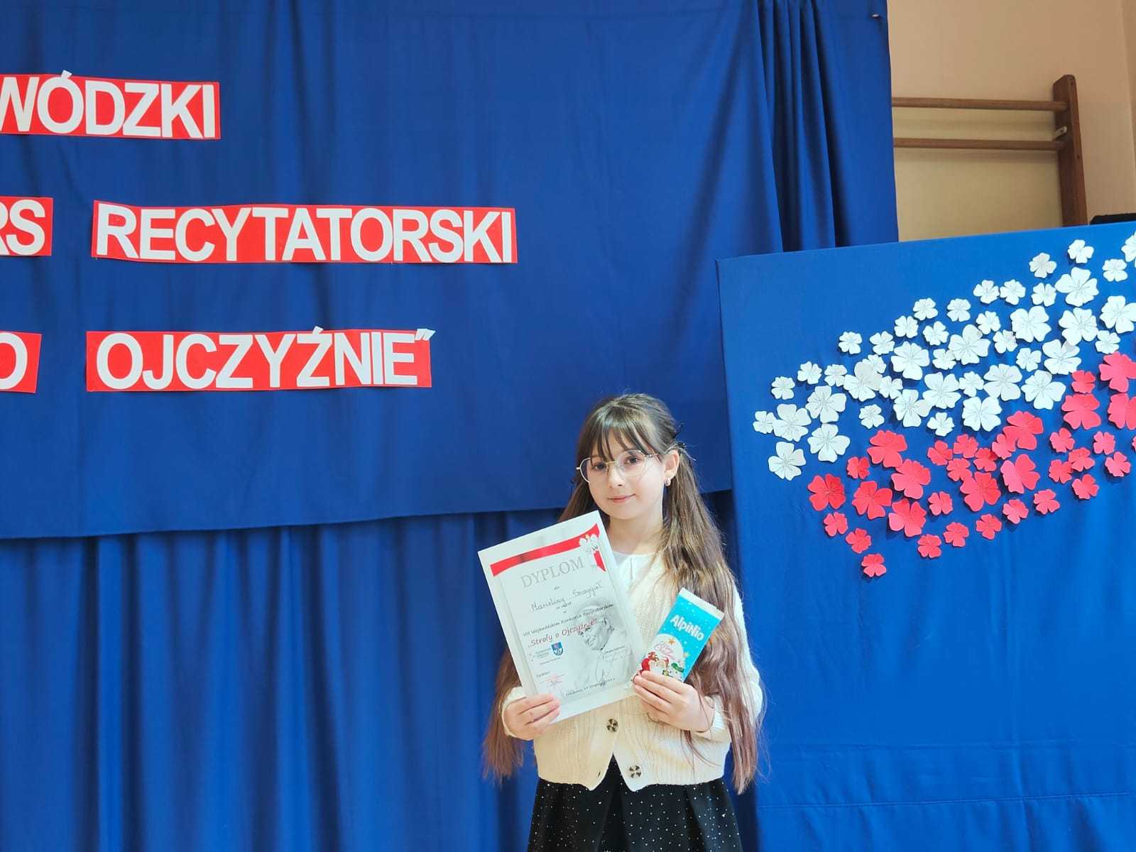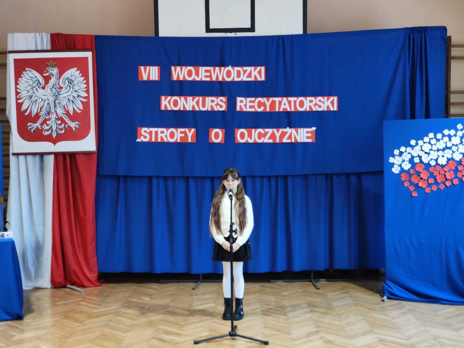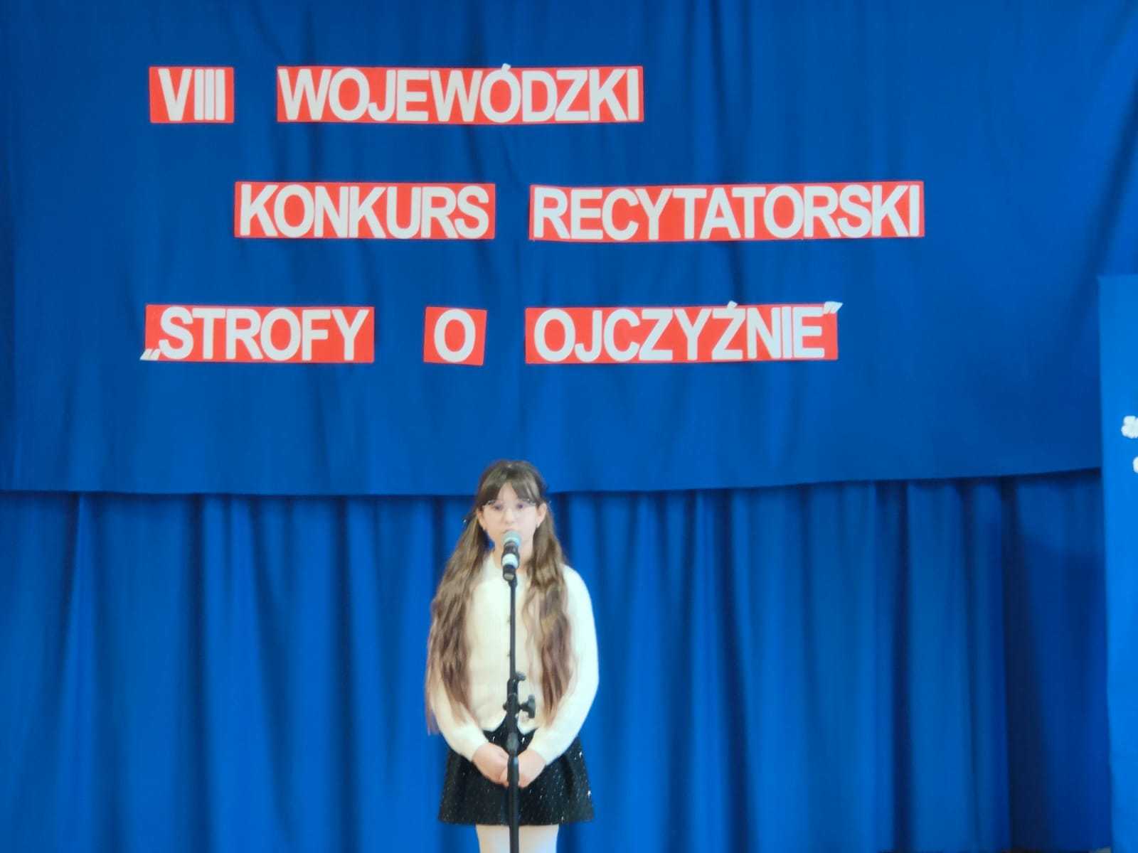 Marcelina Szczygieł, uczennica klasy 4 b godnie reprezentowała naszą szkołę podczas Vlll Wojewódzkiego Konkursu Recytatorskiego “Strofy o Ojczyźnie” organizowanego przez Zespół Szkolno-Przedszkolny w Kraczkowej. Tym razem nie udało się stanąć na podium, ale występ naszej uczestniczki był piękny. Gratulujemy!