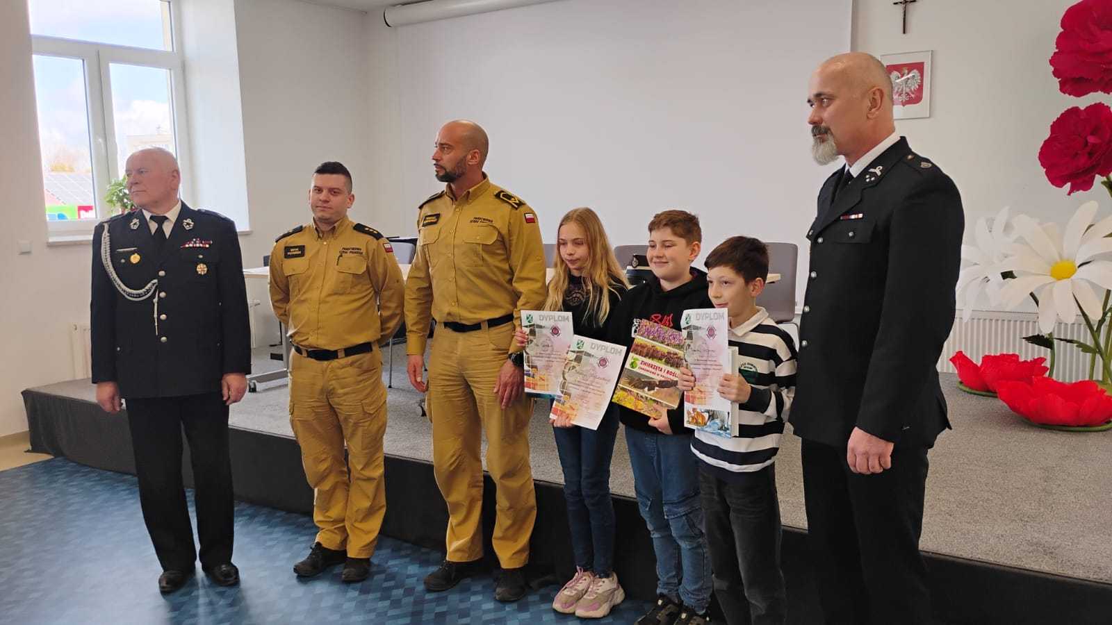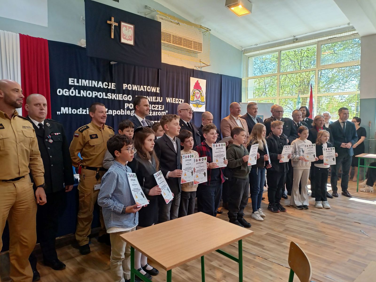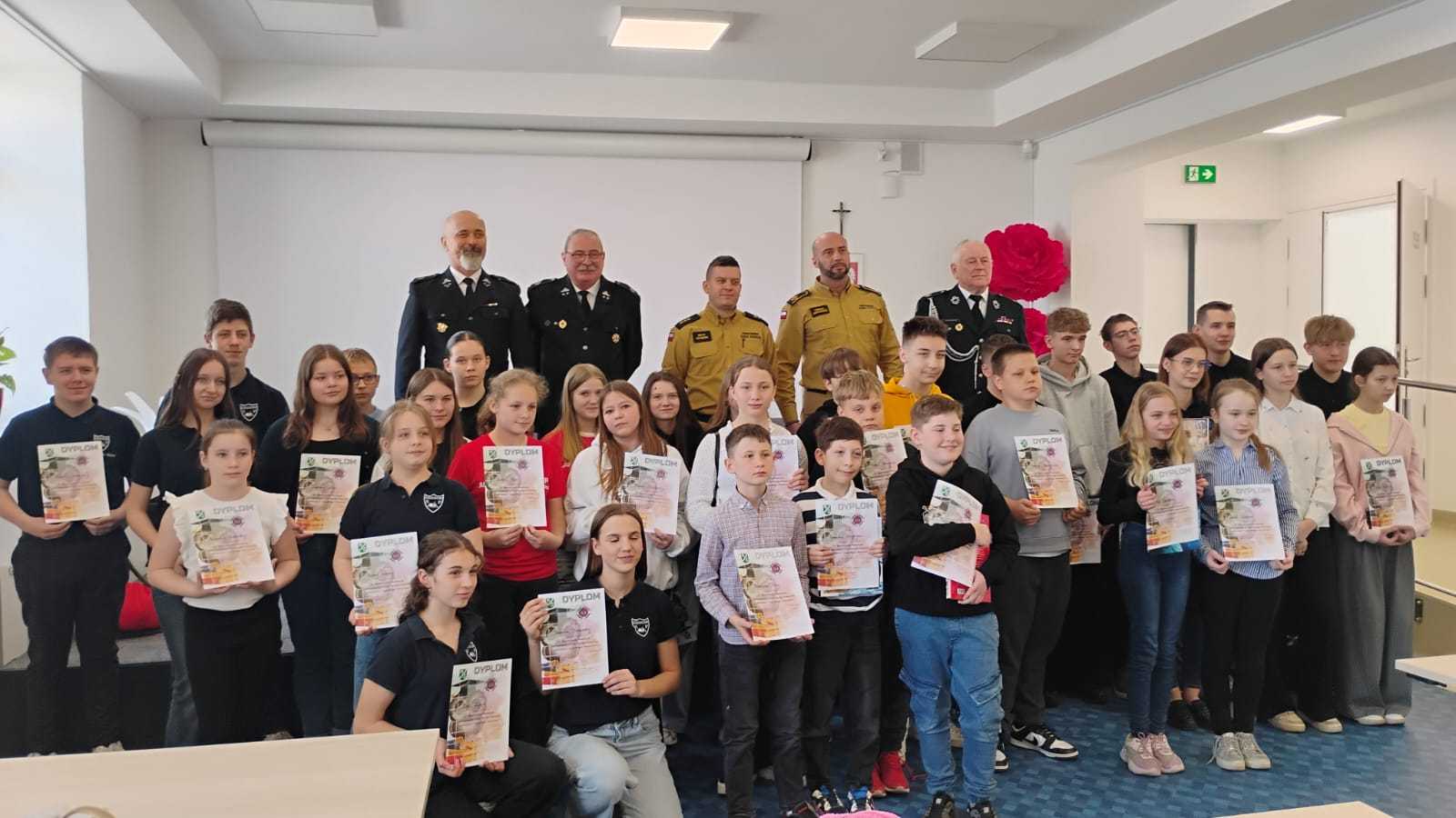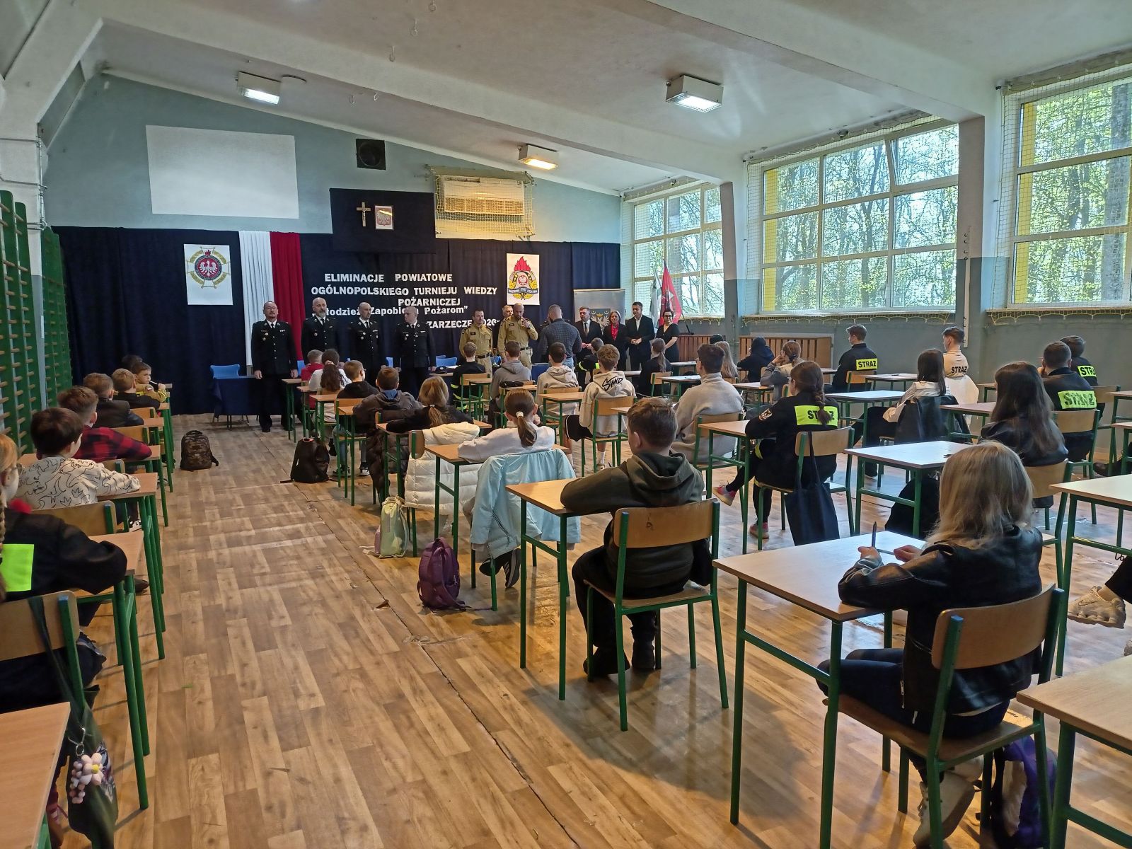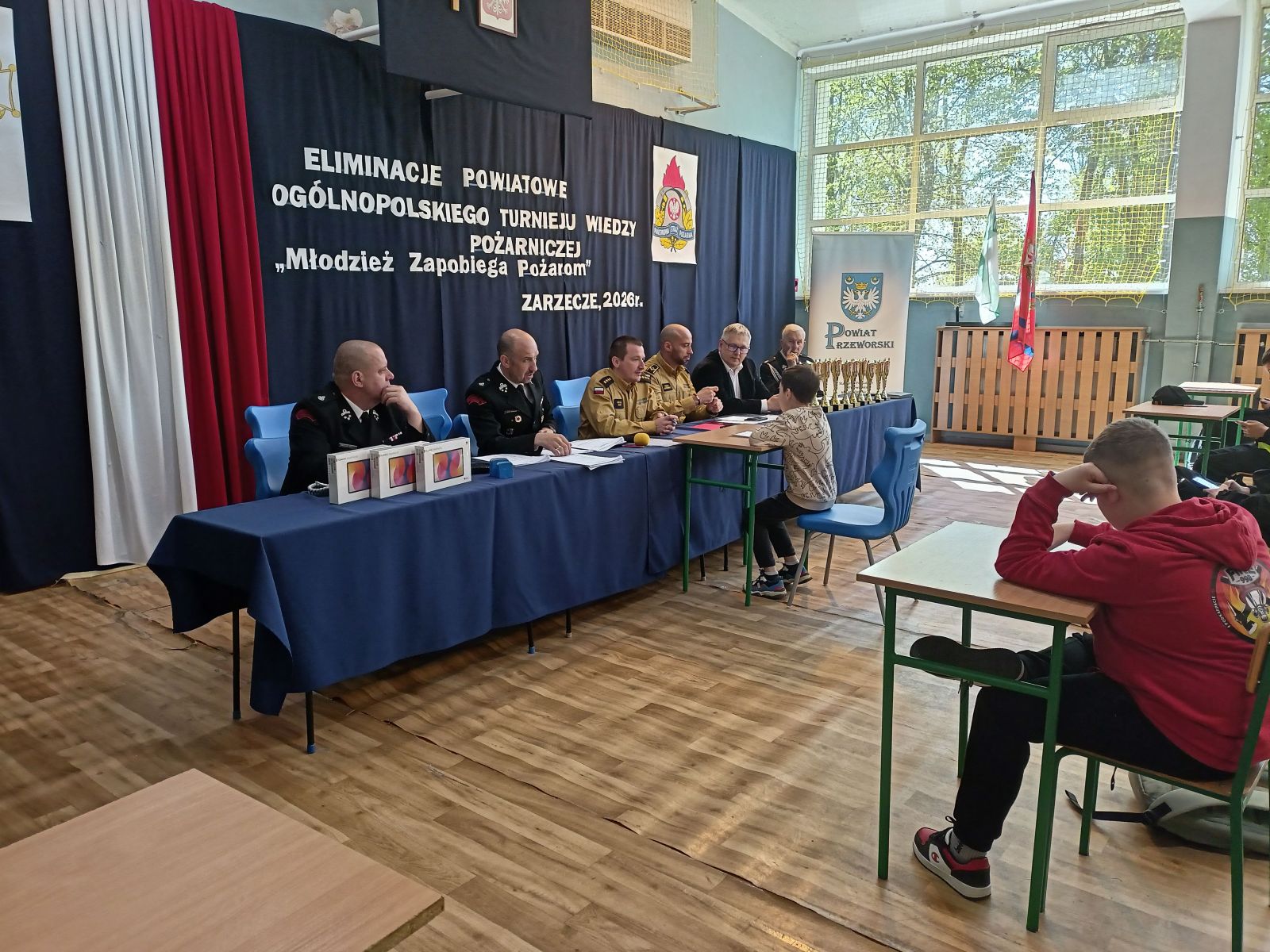 W dniu 10.04.2026r. w Centrum Kultury w Zarzeczu odbyły się eliminacje gminne Ogólnopolskiego Konkursu Wiedzy Pożarniczej Młodzież zapobiega pożarom. Turniej przebiegał w trzech grupach wiekowych tj. kl. I-IV, oraz V-VIII – uczniowie szkół podstawowych, oraz szkoły ponadpodstawowe. Tegoroczna edycja zgromadziła na sali zawodników ze szkół w Siennowie, Maćkówce, Żurawiczkach oraz Zarzecza. Zmaganiom konkursowym przewodniczyli członkowie Zarządu Oddziału Gminnego ZOSP w Zarzeczu w składzie: Komendant Gminny dh Damian Hejnosz, sekretarz Zarządu Gminnego dh Jan Telega, dh Jan Michalik, wraz z przedstawicielami PSP w Przeworsku. Po dokonaniu oceny prac pisemnych, jury wyłoniło po trzech zwycięzców w każdej grupie wiekowej. Wśród nich znaleźli się także uczniowie z naszej szkoły. W pierwszej grupie wiekowej byli to uczniowie kl. IIIb – Tymon Węgrzyn miejsce I, Mikołaj Kulikowski miejsce III. W grupie drugiej miejsce II zajęła uczennica kl. Vb Nadia Telega. Uczniowie ci zakwalifikowali się do etapu powiatowego jako reprezentanci naszej gminy. Etap ten odbył się w dniu 22.04.2026r. w Zespole szkół im. Wincentego Witosa w Zarzeczu.