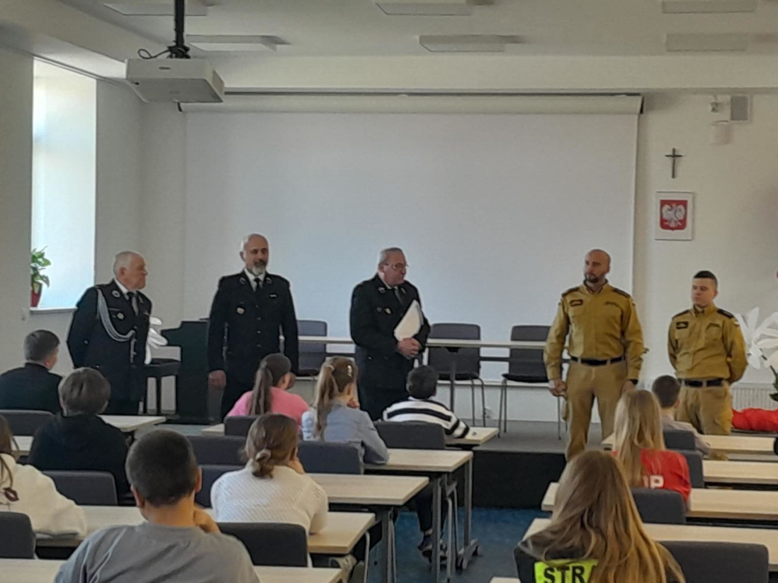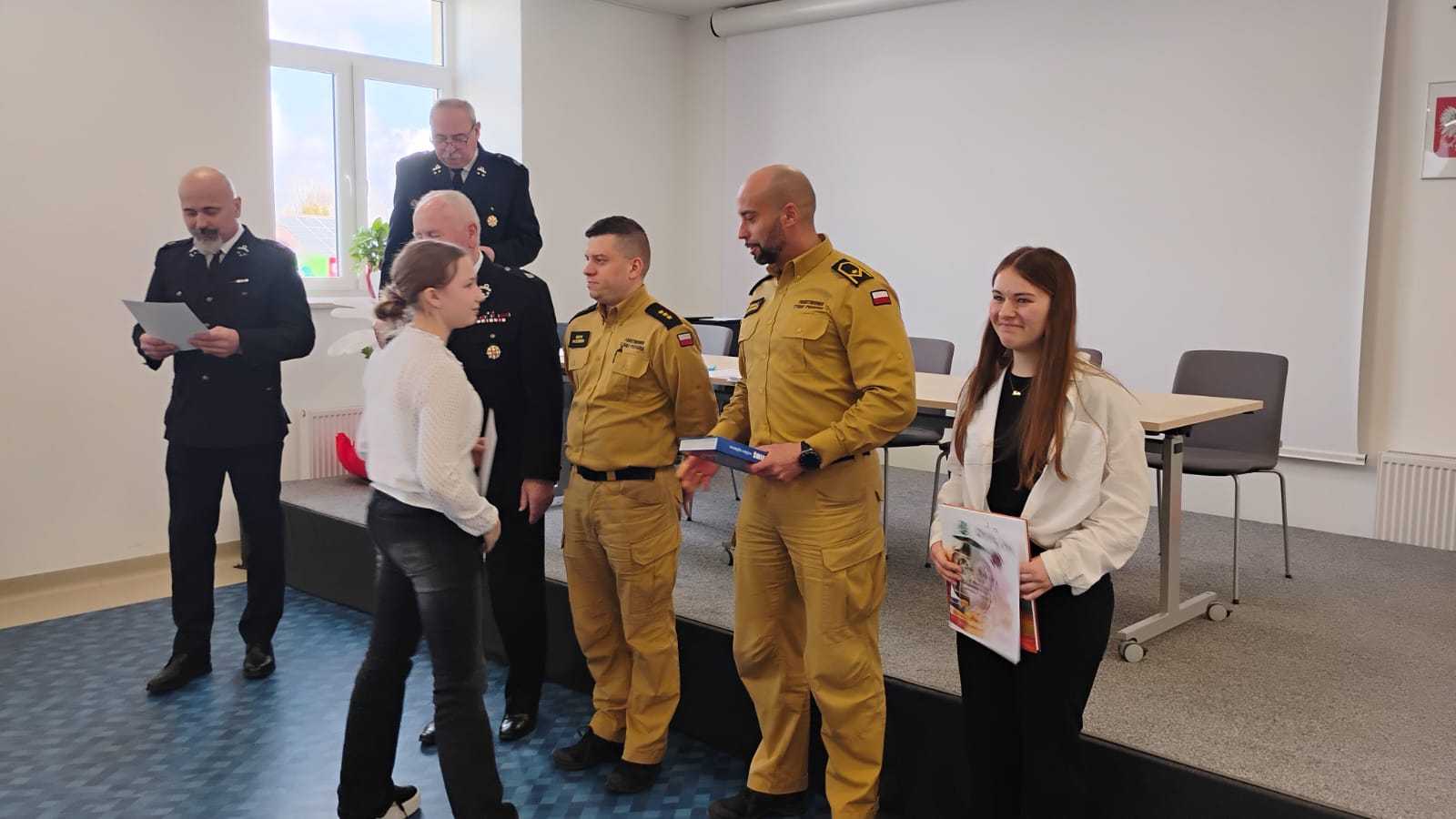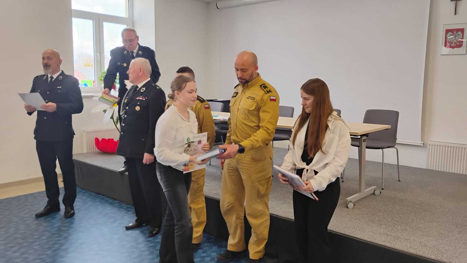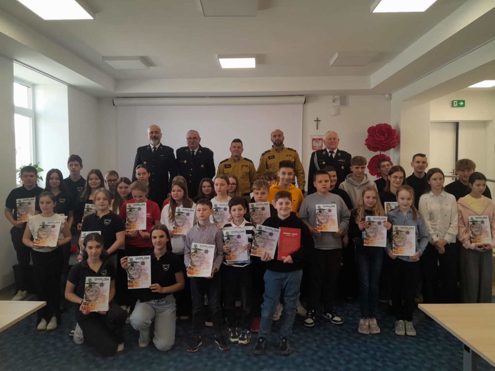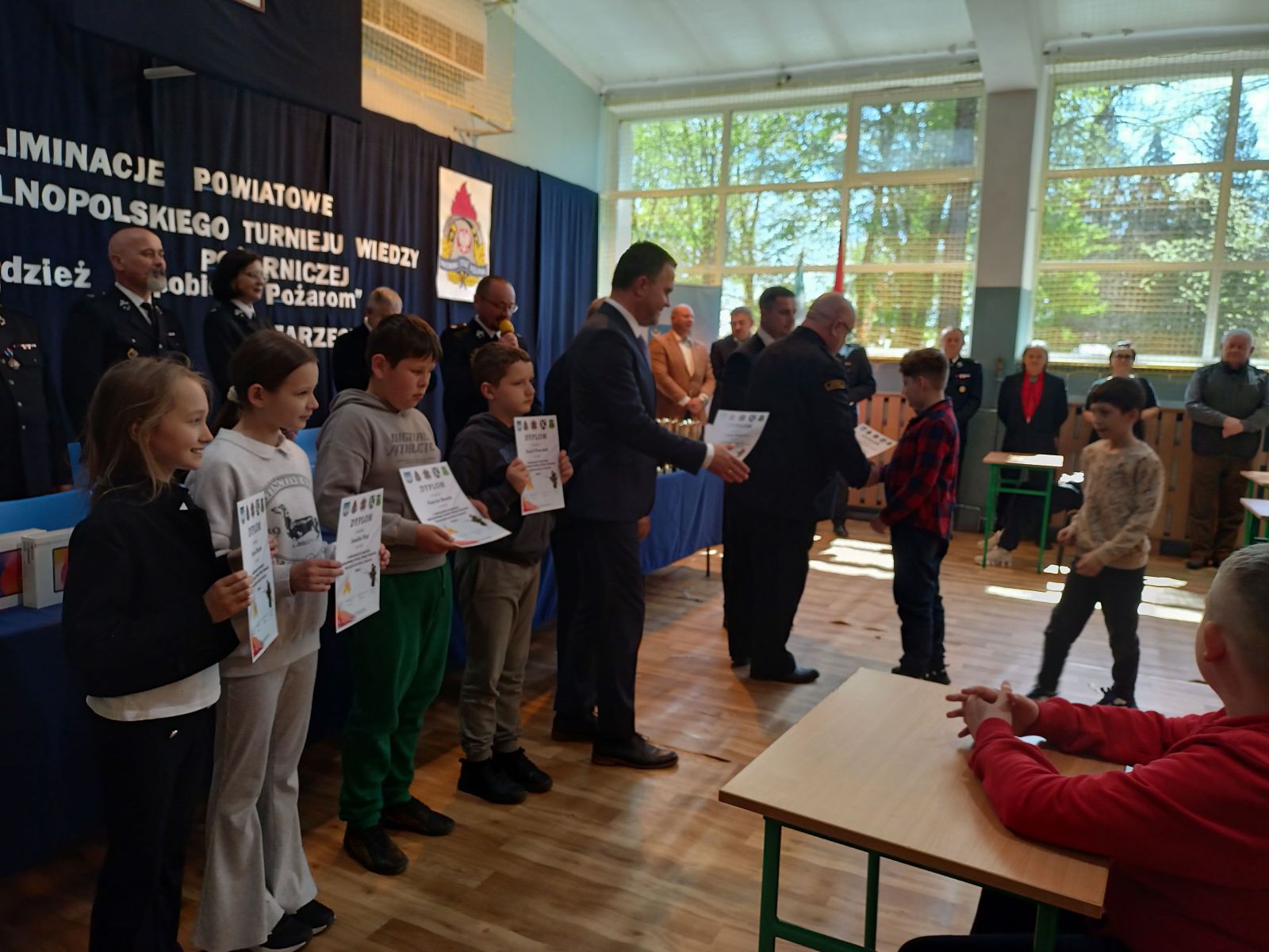 W dniu 10.04.2026r. w Centrum Kultury w Zarzeczu odbyły się eliminacje gminne Ogólnopolskiego Konkursu Wiedzy Pożarniczej Młodzież zapobiega pożarom. Turniej przebiegał w trzech grupach wiekowych tj. kl. I-IV, oraz V-VIII – uczniowie szkół podstawowych, oraz szkoły ponadpodstawowe. Tegoroczna edycja zgromadziła na sali zawodników ze szkół w Siennowie, Maćkówce, Żurawiczkach oraz Zarzecza. Zmaganiom konkursowym przewodniczyli członkowie Zarządu Oddziału Gminnego ZOSP w Zarzeczu w składzie: Komendant Gminny dh Damian Hejnosz, sekretarz Zarządu Gminnego dh Jan Telega, dh Jan Michalik, wraz z przedstawicielami PSP w Przeworsku. Po dokonaniu oceny prac pisemnych, jury wyłoniło po trzech zwycięzców w każdej grupie wiekowej. Wśród nich znaleźli się także uczniowie z naszej szkoły. W pierwszej grupie wiekowej byli to uczniowie kl. IIIb – Tymon Węgrzyn miejsce I, Mikołaj Kulikowski miejsce III. W grupie drugiej miejsce II zajęła uczennica kl. Vb Nadia Telega. Uczniowie ci zakwalifikowali się do etapu powiatowego jako reprezentanci naszej gminy. Etap ten odbył się w dniu 22.04.2026r. w Zespole szkół im. Wincentego Witosa w Zarzeczu.