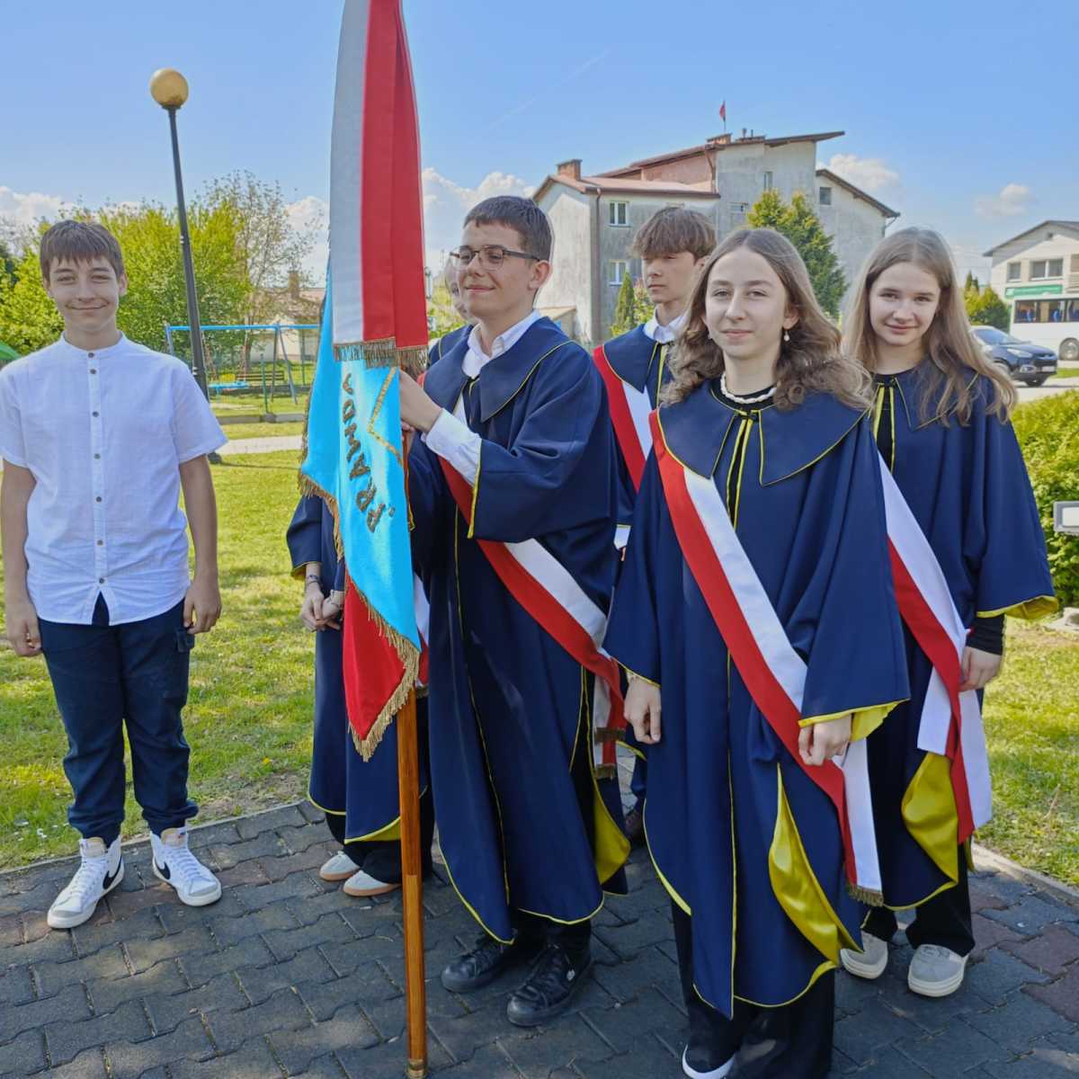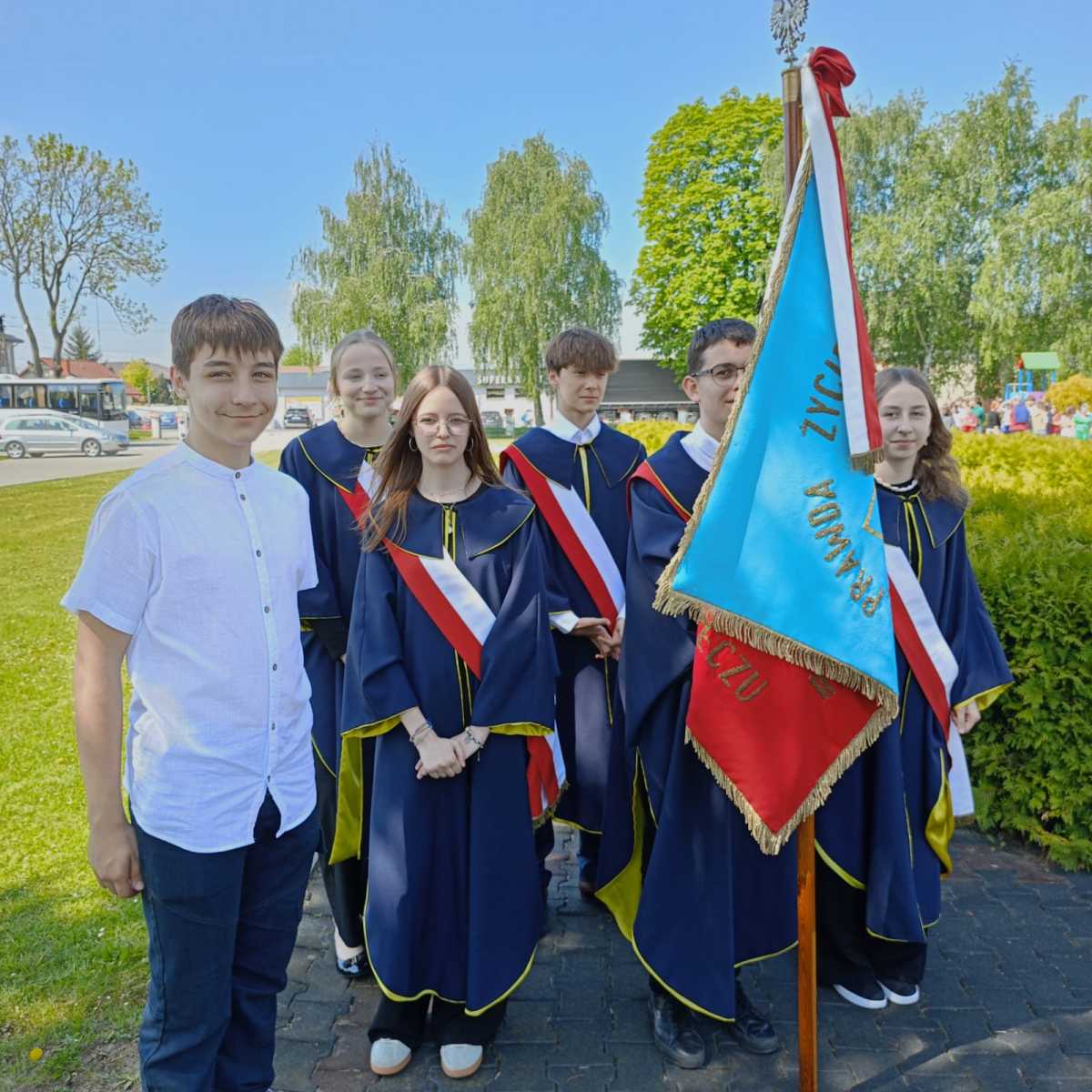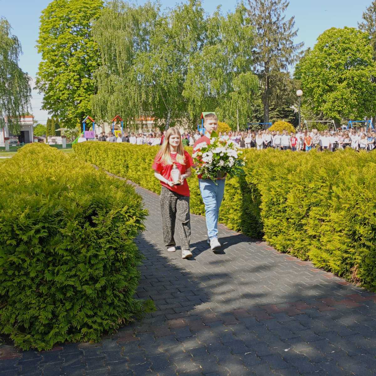 Na zakończenie uczniowie zatańczyli Poloneza, a wszyscy zebrani wspólnie odśpiewali pieśń „Witaj, majowa jutrzenko”, oddając hołd twórcom Konstytucji i wyrażając radość z majowego święta narodowego.